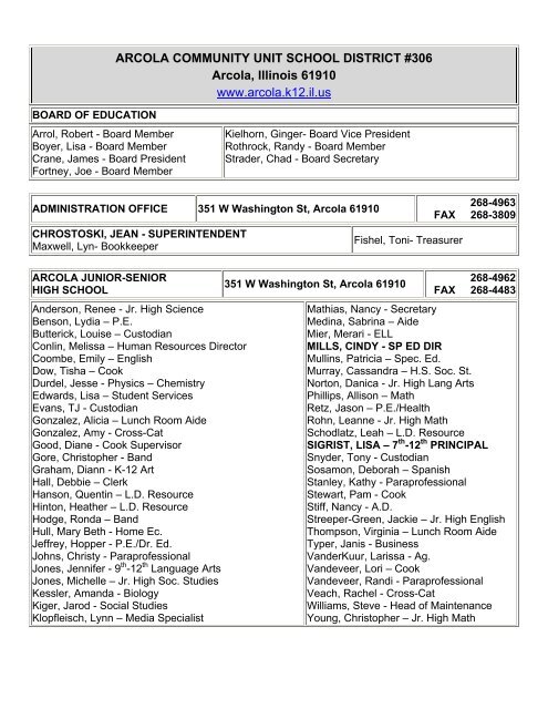 Arcola Community Unit School District 306 Roe 11